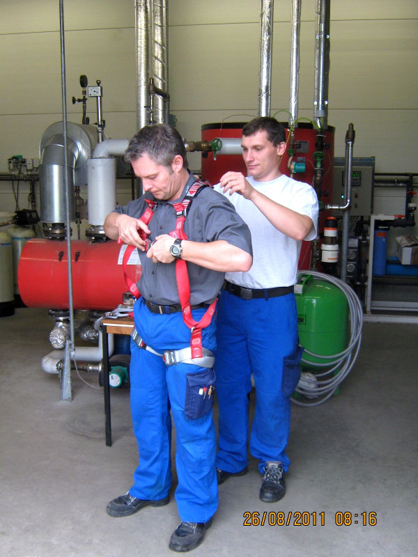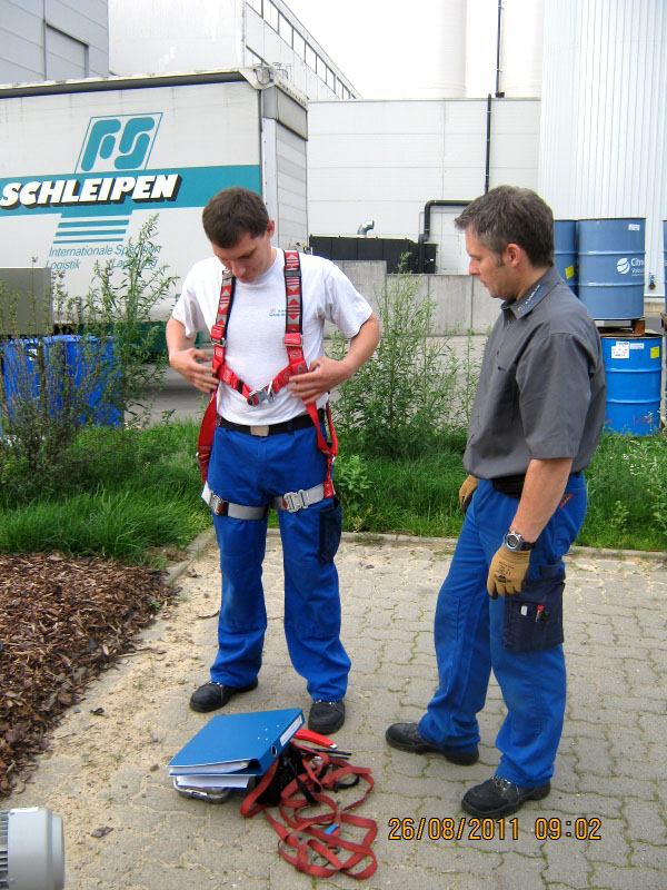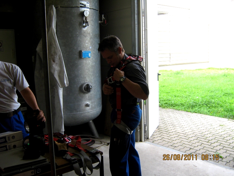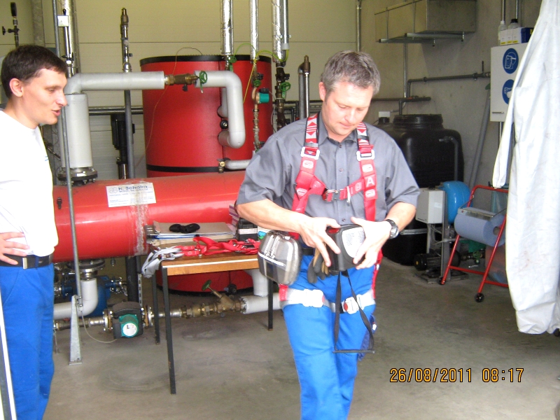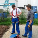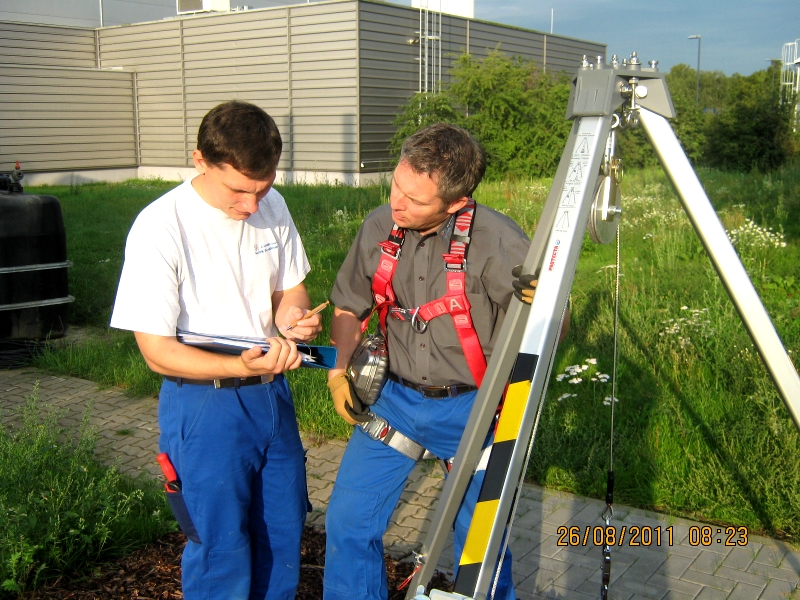 - Sicherung der Personen durch Fallgeschirr und Rettungshubgerät sowie Ausrüstung mit Fluchtretter