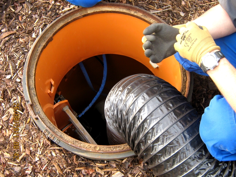Wartung von Gaskondensatsammelschächten einer Biogas-Anlage